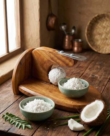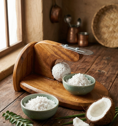 A wooden coconut scraper is a beautiful blend of traditional craftsmanship and kitchen utility. Often referred to as a “Chirava” or “Kikir” in various cultures, it’s designed to make the labor-intensive task of grating fresh coconut both efficient and comfortable.