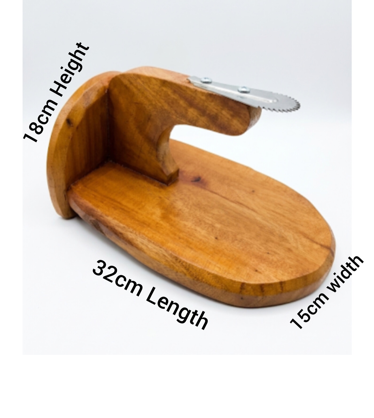 * Stainless Steel Blade: Features a sturdy, serrated metal blade (scraper head) firmly bolted to the wooden frame for long-lasting performance.